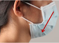 - Ajustar bem a máscara ao rosto, abrindo-a sobre o rosto de forma a tapar bem a boca, queixo, e nariz para que não haja entradas de ar, ajustando-a na zona do nariz , como mostram as figuras.
