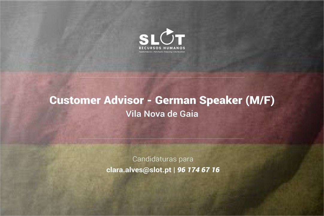 Para se candidatar a esta vaga, envie o seu CV acompanhado de fotografia actualizada para clara.alves@slot.pt indicando a referência “Customer Advisor Alemão - Porto.